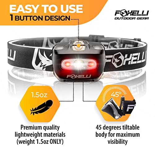 Foxelli LED Headlamp Flashlight for Adults & Kids, Running, Camping, Hiking Head Lamp with White & Red Light, Comfortable Headband, Lightweight & Waterproof, 3 AAA Batteries