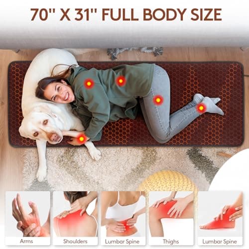 UTK Full Body Size Infrared Heating Pad for Pain Relief, 70" x 31" Ultra Soft Far Infrared Heating Mat, EMF Free, FSA-HSA Eligible, Smart Controller with Memory Function, Super Large Size