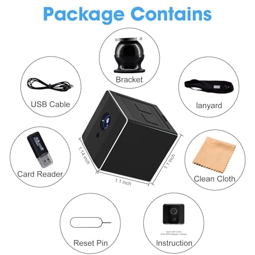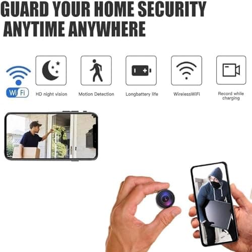 Wireless-WiFi-Security-Mini-Camera, Real 1080P Full HD with Night Vision and Motion Detection Recording, 2-IN-1 Real-time Monitoring for Home/Office, Work with IOS&Android APP(Support 2.4G and 5G)