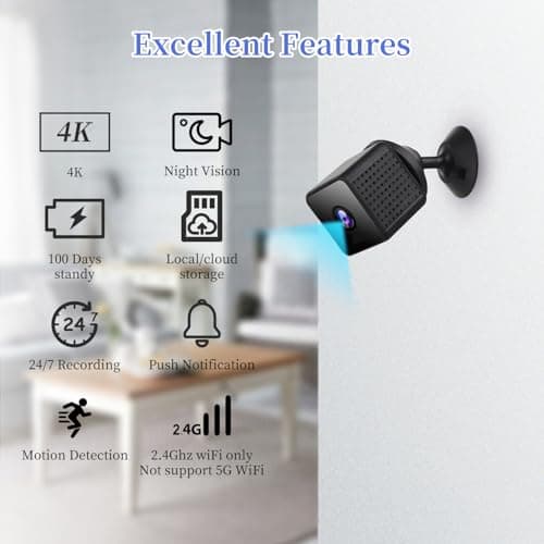 Terura Mini Camera, 4K WiFi Wireless Camera Micro Portable Nanny Cam with Motion Detection, Cloud & SD Storage, Night Vision, Smart HD Tiny Security Cameras for Home Pet Baby Office Indoor Outdoor