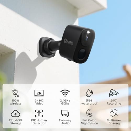 QNINE Outdoor Security Camera 2 Pack, 2K Wireless Cameras with 2-Way Audio, Motion Detection, Waterproof, Color Night Vision, TF/Cloud Storage (up to 256GB), Alexa Compatible