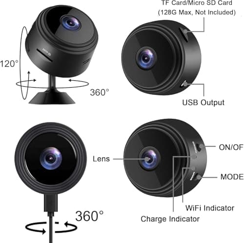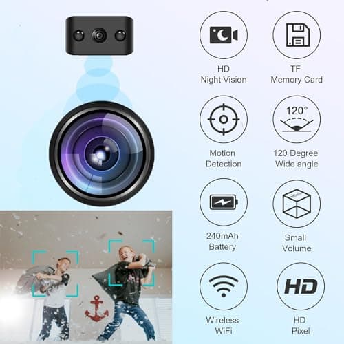 HowKow Spy Indoor Wireless Camera Mini Hidden WiFi Cameras Home Security Room Body Cam Nanny Smart Home Outdoor Cams Pet Dog Baby Camara 1080P House Portable Tiny Small Room Night Vision Door SpyCam