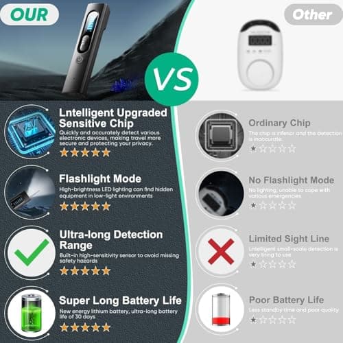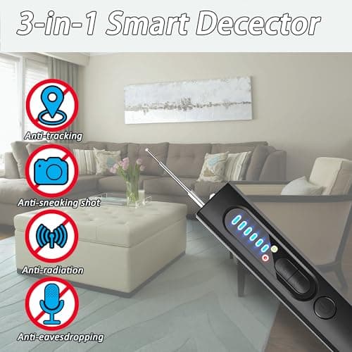 SINBEN Hidden Camera Detectors and Bug Detectors, 2025 Anti-Spy Cameras Finder Detector, GPS Hidden Camera Detector, Tracking Device Detectors, Cameras Detector for Hotels, Home, Office (Black)