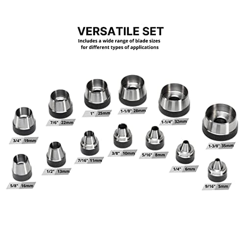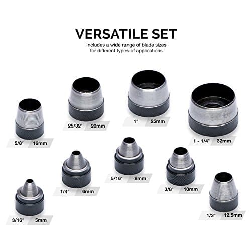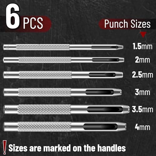 UNCO- Leather Hole Punch Tool, 6 Different Hole Sizes (5/64", 3/32", 7/64", 1/8", 5/32", 3/16"), Durable Hole Punch for Watch Bands, Straps, Dog Collars, Saddles, Shoes, Fabric, DIY Craft Projects