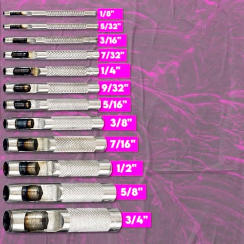 UNCO- Leather Hole Punch Tool, 6 Different Hole Sizes (5/64", 3/32", 7/64", 1/8", 5/32", 3/16"), Durable Hole Punch for Watch Bands, Straps, Dog Collars, Saddles, Shoes, Fabric, DIY Craft Projects