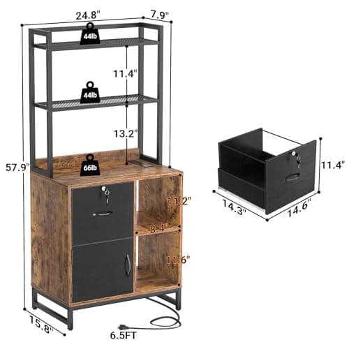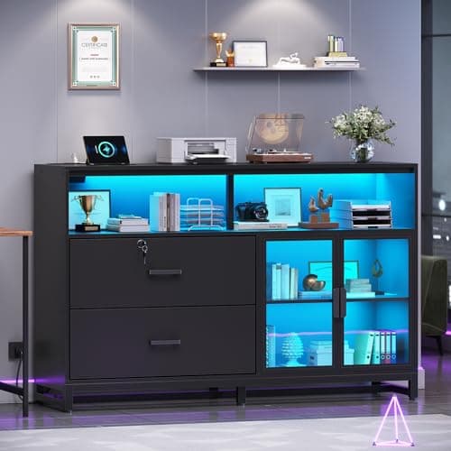 SEDETA 59" File Cabinet, 2 Drawers Filing Cabinets for Home Office fit Legal/Letter/A4 File, File Cabinet with Lock & Power Outlets, Printer Stand with Storage & LED Lights, Black
