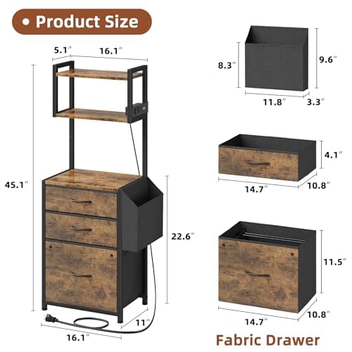 DEVAISE 3 Drawer Mobile File Cabinet, Wood Lateral Filing Cabinet, Printer Stand with Open Shelves for Home Office, Rustic Brown