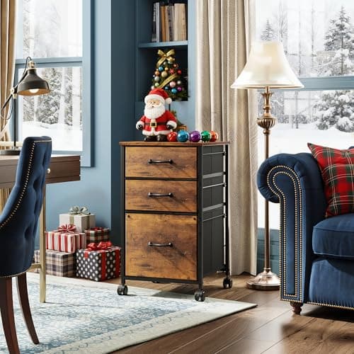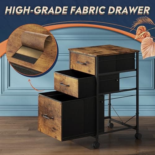 DEVAISE Mobile File Cabinet, Rolling Printer Stand with 3 Drawers, Fabric Vertical Filing Cabinet fits A4 or Letter Size for Home Office, Rustic Brown Wood Grain Print