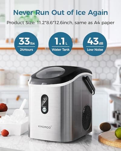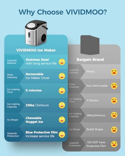 VIBOFROST Nugget Ice Maker Countertop, Fast 35lbs/24H Sonic Pebble Ice Machine, Self-Cleaning Anti-Scale System, Stainless Steel Portable Ice Maker for Home, Kitchen, RV, 10 Cleaning Packets
