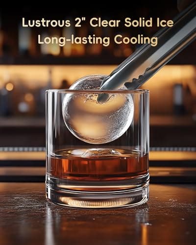 ecozy 2" Clear Ice Ball Maker with CrystalFlux Technology, 4 pcs in 40 Mins, 144 pcs/Day, Sphere Ice Maker with Automatic Water Supply, Self-Cleaning, Enhanced Insulation for Whiskey & Bourbon