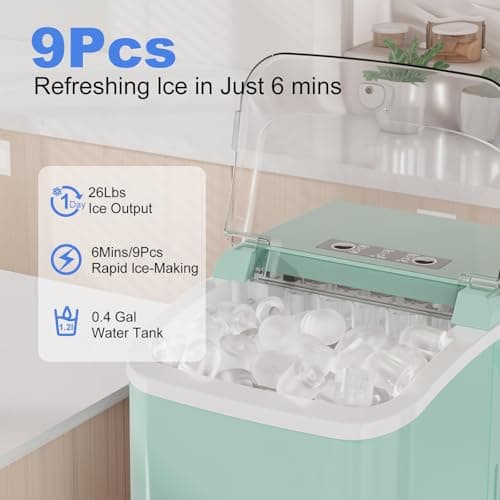 Countertop Ice Maker, Ice Maker Machine 6 Mins 9 Ice, 26.5lbs/24Hrs, Portable Ice Maker Machine with Self-Cleaning, Ice Scoop, and Basket, Compact Ice Maker for Home/Kitchen/Office/Party