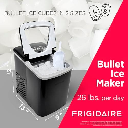 Frigidaire Countertop Portable, 26 lb per Day Bullet Ice Maker Machine (Black Stainless Steel)