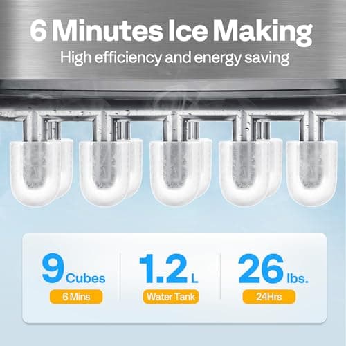 Silonn Ice Maker Countertop, Stainless Steel Portable Ice Machine with Carry Handle, Self-Cleaning Ice Makers with Basket and Scoop, 9 Cubes in 6 Mins, 26 lbs per Day