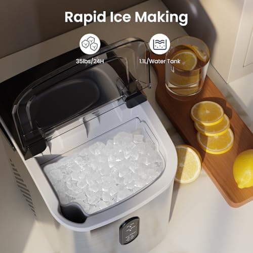Antarctic Star Nugget Ice Makers Countertop with Self-Cleaning, 35lbs/24H, Portable Sonic Ice Maker Machine with Handle/Basket/Scoop for Home, Kitchen, Office, Camping(Stainless Steel Silver)