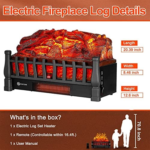duraflame Electric Log Set 400 Sq Ft Heater, Faux Logs Insert with Lifelike Flames for Existing Fireplaces, Remote Control Included