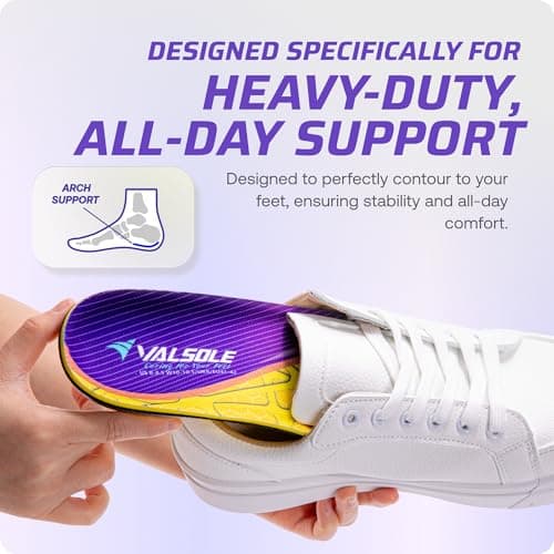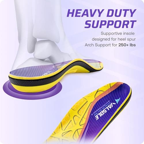 VALSOLE Heavy Duty Support Pain Relief Orthotics - 220+ lbs Plantar Fasciitis High Arch Support Insoles for Men Women, Flat Feet Insert, Work Boot Shoe Insole, Absorb Shock with Every Step