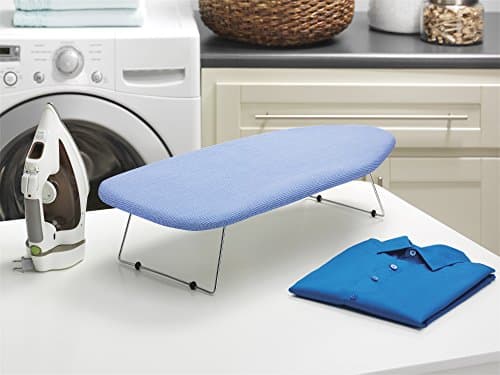 Honey-Can-Do Foldable Tabletop Ironing Board with Iron Rest, Blue Stripe