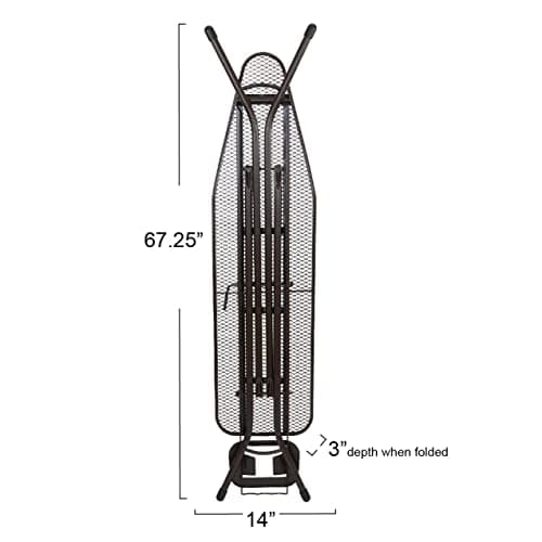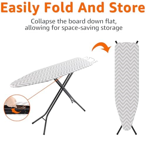 Amazon Basics Height Adjustable Full-Size Foldable Ironing Board, 4-Leg Fold-Up, Chevron Removable Cover, 60" x 14" x 38"
