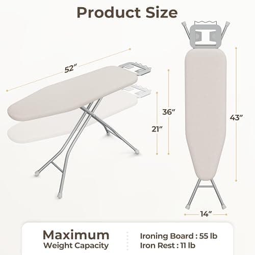 Jakeefud Deluxe Ironing Board with Heat Resistant Cover and Thicken Felt Pad, Heavy Sturdy Legs,Full Size Hanger Iron Board,Foldable (L-Grey)