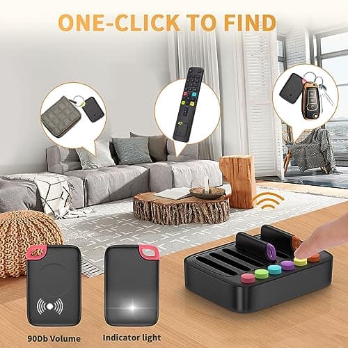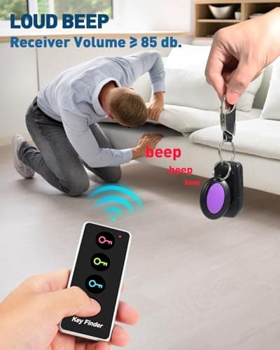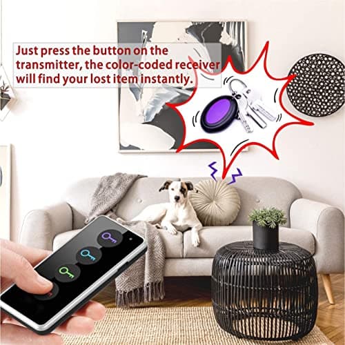 Reyke Key Finder, 80dB+ RF Item Locator Tags with 131ft. Working Range, Wireless Remote Tracker for Wallet, Phone, Glasses, Pet, 1 RF Transmitter & 4 Receivers