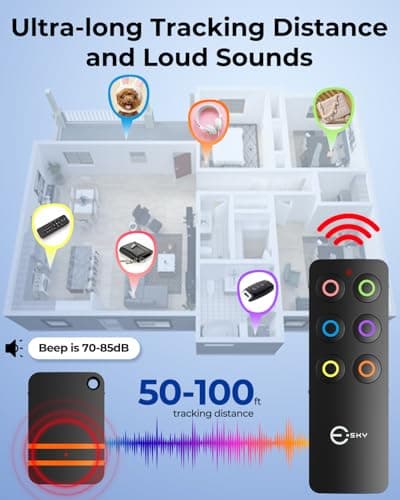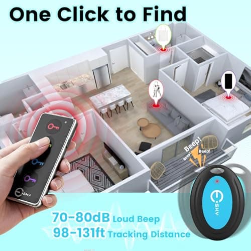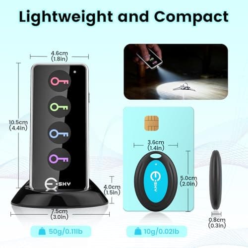 Esky Key Finder Locator with Sound, 80dB Item Trackers with 131ft Range Beeper Tags, Wireless Key Finders for Finding Keys Wallet Remote Control Pet Phone, 4 Receivers & Flashlight