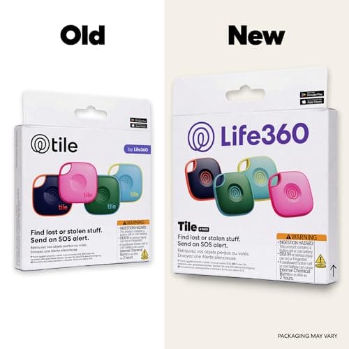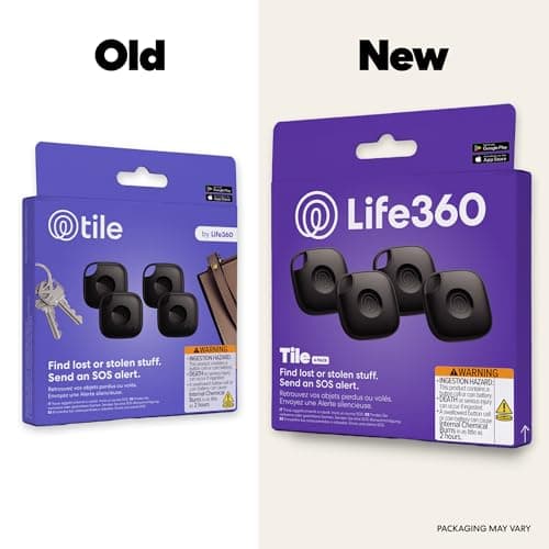 Life360 Tile - Bluetooth Tracker, Keys Finder and Item Locator for Keys, Bags and More. Phone Finder. Both iOS and Android Compatible. 4-Pack (Colors)