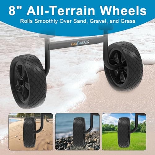 Kayak-cart shopping usually splits into a few practical lanes instead of one generic pool. One lane is launch-surface driven, where shoppers need a cart that stays manageable on soft sand and beach terrain or want the confidence of airless no-flat wheels. Another lane is transport-format driven, where foldable-frame carts and compact portable carts matter more than maximum load support. A third lane is load-shape driven, where buyers sort between kayak and canoe carts, paddleboard carts, and broader jon-boat or float-friendly carts.