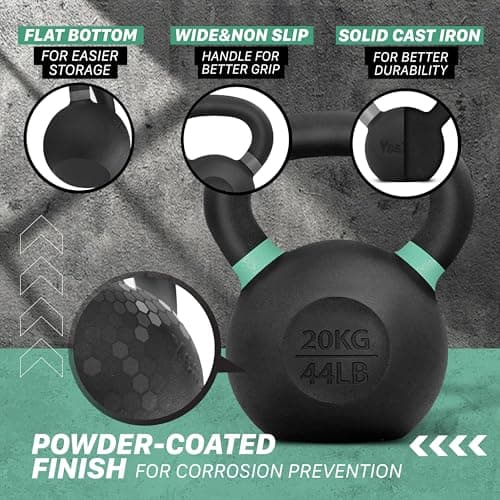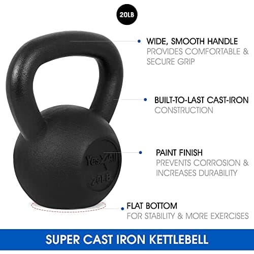 Yes4All Kettlebell Sets - 10, 15 & 20 LB Cast Iron Strength Training Kettlebells, Wide Handles & Flat Bottom for Push Ups, Swings, Squats & Full Body Workout at Home or Gym