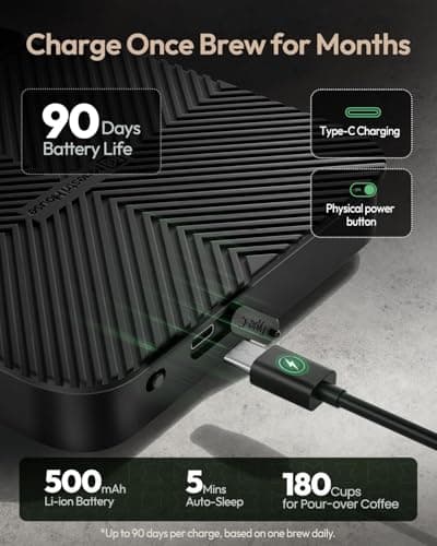 Maestri House S3 Coffee Scale with Timer, 3kg/0.1g Rechargeable Digital Scale, 3 Brew Modes, Adjustable Ratios & Flow Rate Display, Barista-Grade for Pour-Over, Espresso, French Press – Black