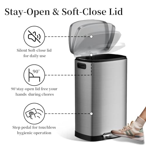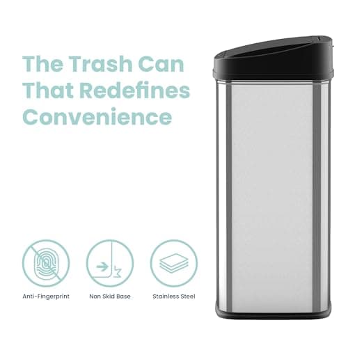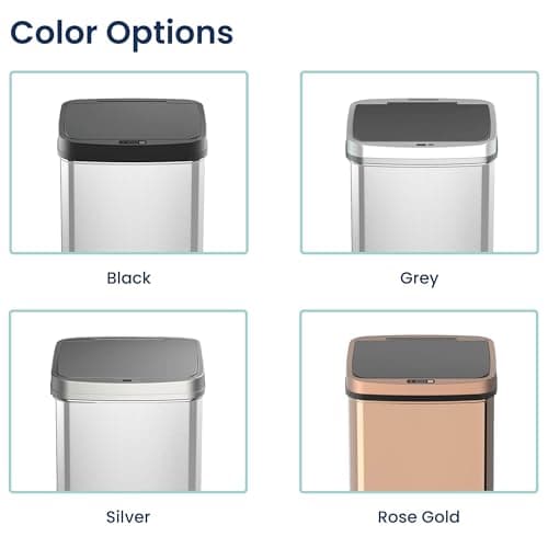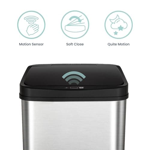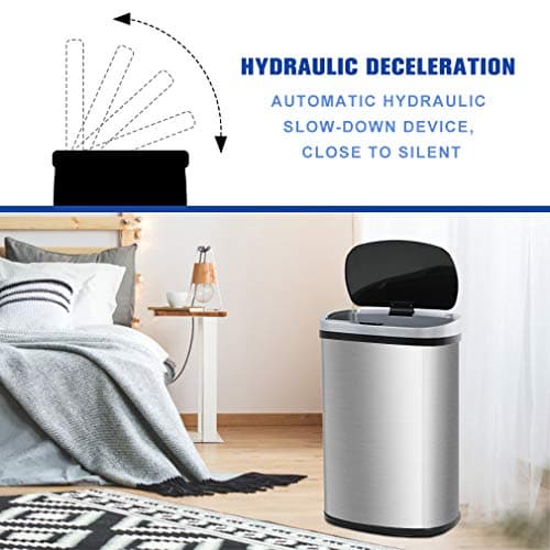 BestOffice | 13 Gallon Trash Can with Lid | Automatic Touchless Garbage Can | Odor Control | Modern Oval Design | Easy to Clean | Stainless Steel | Fits Any Kitchen, Bathroom, Office or Home