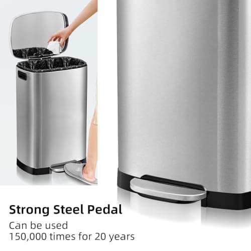 Amazon Basics Smudge Resistant Small Rectangular Step Pedal Trash Can with Soft-Close Lid, Removable Inner Bucket, Brushed Stainless Steel, 12 Liter/3.1 Gallon, Satin Nickel Finish