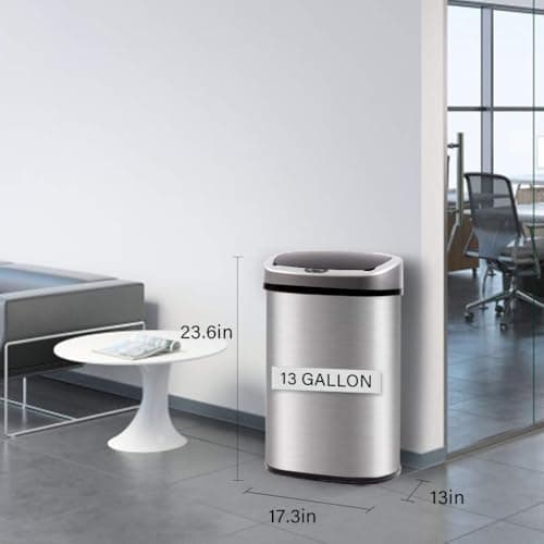 Ninestars 13 Gallon Kitchen Trash Can, Automatic Touchless Motion Sensor Trash Can with Black Lid, 50 Liter Stainless Steel Garbage Bin, Oval, DZT-50-13