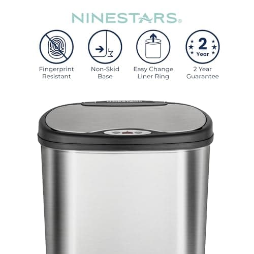 NINESTARS DZT-50-9 Automatic Touchless Infrared Motion Sensor Trash Can, 13 Gal 50L, Stainless Steel Base (Oval, Silver/Black Lid)