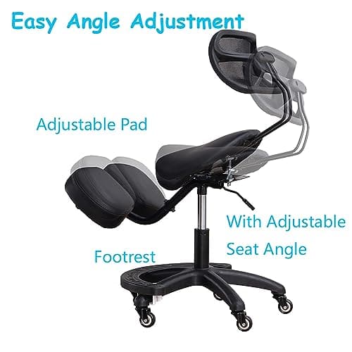 Ergonomic Kneeling Chair, Adjustable Stool for Home and Office - Improve Your Posture with an Angled Seat - Thick Comfortable Moulded Foam Cushions - Brake Casters