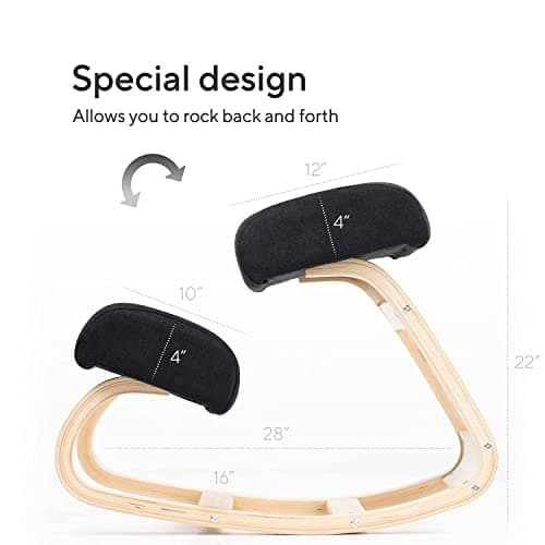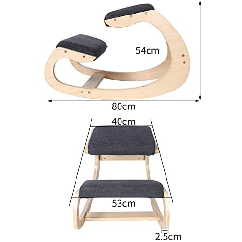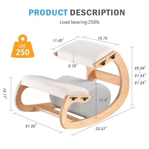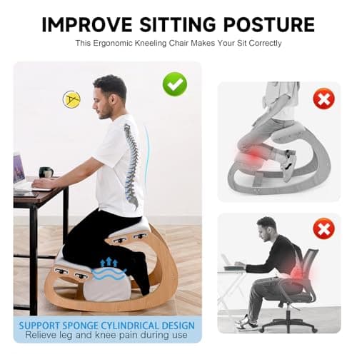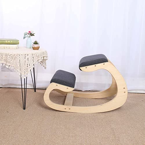 Easyego Kneeling Chair Ergonomic Posture Chair, Wood Adjustable Rocking Knee with Soft Padding, Natural Relief for Neck or Back Pain for Home Office, Max Load 300 lb - Gray