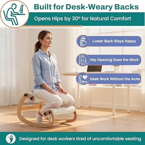 The full kneeling chair category works best as a hub for sorting by movement, support, and finish before you narrow down. If you already know you want a traditional posture stool, start with classic kneeling stools or rocking-base kneeling chairs. If you need a desk-friendly model that is easier to move and dial in, jump to height-adjustable kneeling chairs and rolling caster kneeling chairs. When comfort and symptom relief are the real reason for shopping, compare kneeling chairs for back and neck relief with back-support kneeling chairs before looking at finish or styling details.