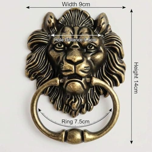QWORK Antique Lion Head Bronze Door Knocker - Classic Vintage Design