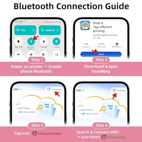 ORGSTA Sticker Printer Mini Printer S002 PrintPods Bluetooth Portable Sticker Maker with 1 Roll Paper Thermal Inkless Label Maker Machine Impresora Portátil Instant Print for Notes, Journal, DIY, Gift