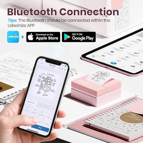 Rotema Label Maker Machine with Tape – Bluetooth Thermal Label Printer, Mini Sticker Maker for Home, Office, School & Small Business, Includes 2 Rolls of Label Paper