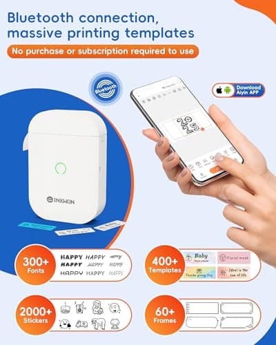 InkWon Label Maker Machine with Tape, D11s Bluetooth Label Maker Waterproof Labels, Portable Mini Label Printer with Various Templates for Home Office School, White