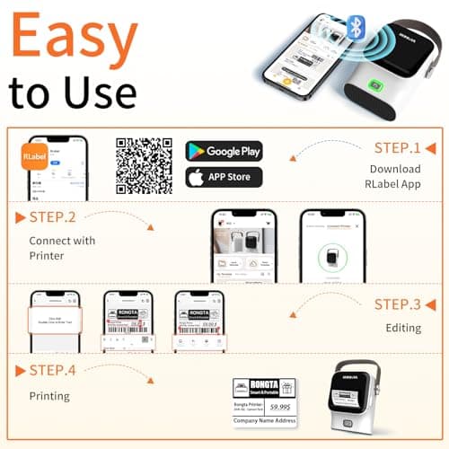 Rongta Bluetooth Thermal Shipping Label Printer, Wireless 4x6 Label Sticker Printer for Shipping Packages, Support Android, iPhone, Widely Used for Amazon, Ebay, Shopify, Etsy, UPS