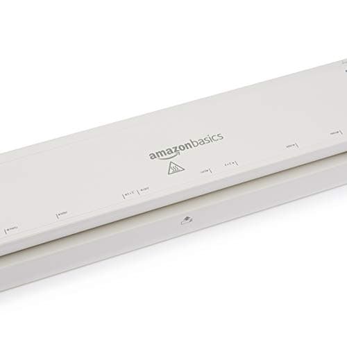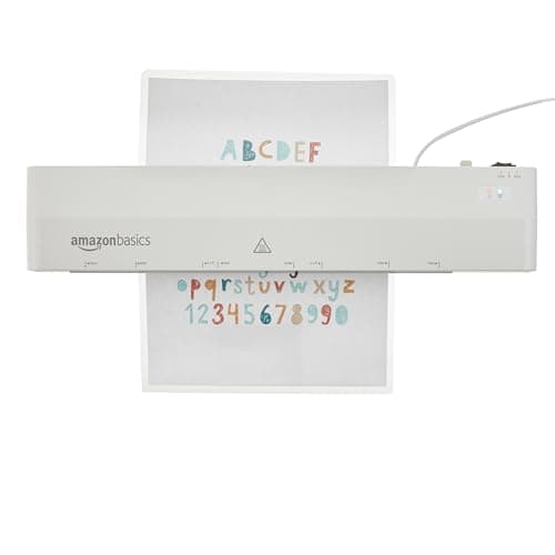 Amazon Basics 9-Inch Thermal Laminator Machine with Quick Warm-Up, 2 Heat Settings, Jam Release for Documents and Photos, White