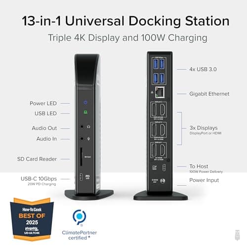 Plugable 13-in-1 USB C Docking Station 4K Triple Monitor with 100W Power Delivery | USB C Dock for Windows, Mac, ChromeOS, Thunderbolt | Driver Required | 3X HDMI and 3X DisplayPort (UD-ULTC4K)