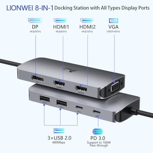 LIONWEI Laptop Docking Station Dual Monitor, 11-in-1 to 4K HDMI,VGA,Gigabit Ethernet,3 USB 3.1 10G,2 USB 2.0,87W PD,Audio for Dell/Surface/HP/Lenovo Laptops