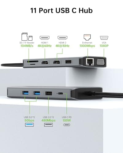 USB C Laptop Docking Station Dual Monitor HDMI for Dell HP 11 in 1 Type USB C Hub Triple Display Multiport Adapter Dongle to 2 HDMI 4K Ethernet 4 USB PD SD TF VGA for MacBook Lenovo Surface