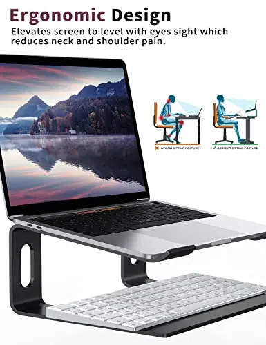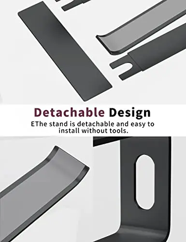 BESIGN LS03 Aluminum Laptop Stand, Ergonomic Detachable Computer Stand, Riser Holder Notebook Stand Compatible with Air, Pro, Dell, HP, Lenovo More 10-15.6" Laptops, Black