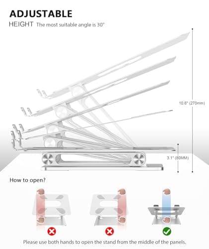 Finally, confirm fit and ergonomics. Check the supported laptop size, lip depth, and how the stand handles typing pressure. Larger 16-inch and 17-inch laptops need broader support and less wobble, while compact machines can prioritize portability. If posture is the real goal, compare eye-level stands, tilt-angle stands, and wrist-relief setups before choosing.
