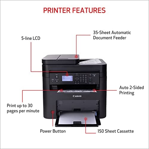 Canon imageCLASS D1620 - Monochrome Duplex Wireless Laser Printer, Multifunction With Scanner, Copier, Automatic Document Feeder, 3 Year Limited Warranty, 45 PPM, White