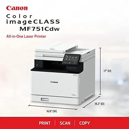 Canon Color imageCLASS MF751Cdw II - Wireless Duplex Laser Printer, Multifunction with Copier, Scanner, Automatic Document Feeder, 3 Year Limited Warranty, 35 PPM