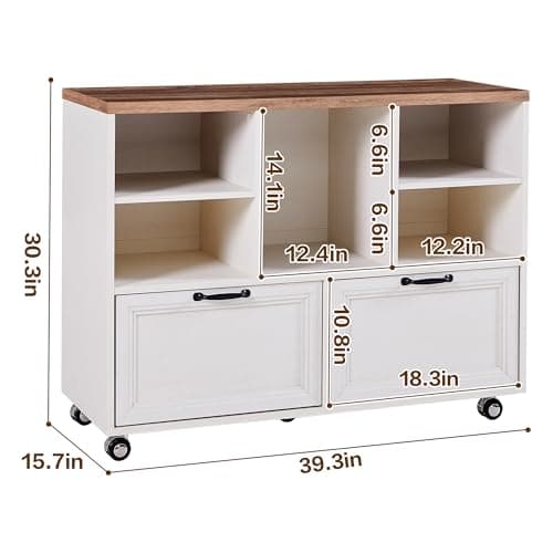 40" Lateral File Cabinet with Wheels,Farmhouse Wood File Cabinets with shelve,Filing Cabinets with 2 Drawers for Legal/Letter/ A4 Size